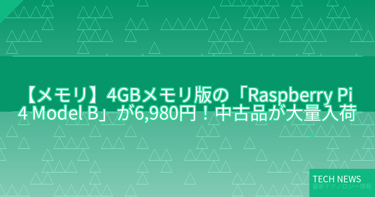 記事タイトル:4GBメモリ版の「Raspberry Pi 4 Model B」が6,980円!中古品が大量入荷