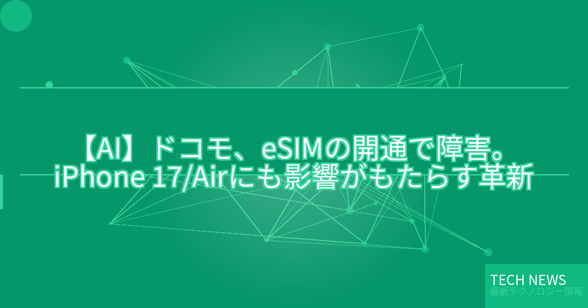 記事タイトル:ドコモ、eSIMの開通で障害。iPhone 17/Airにも影響