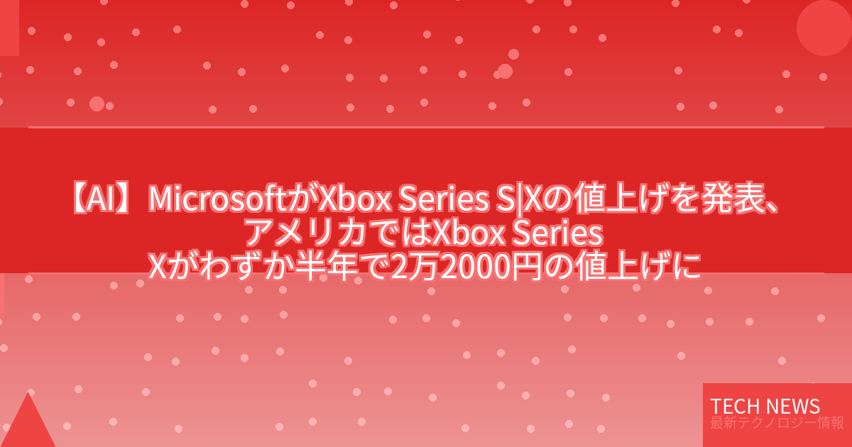 記事タイトル:MicrosoftがXbox Series S|Xの値上げを発表、アメリカではXbox Series Xがわずか半年で2万2000円の値上げに