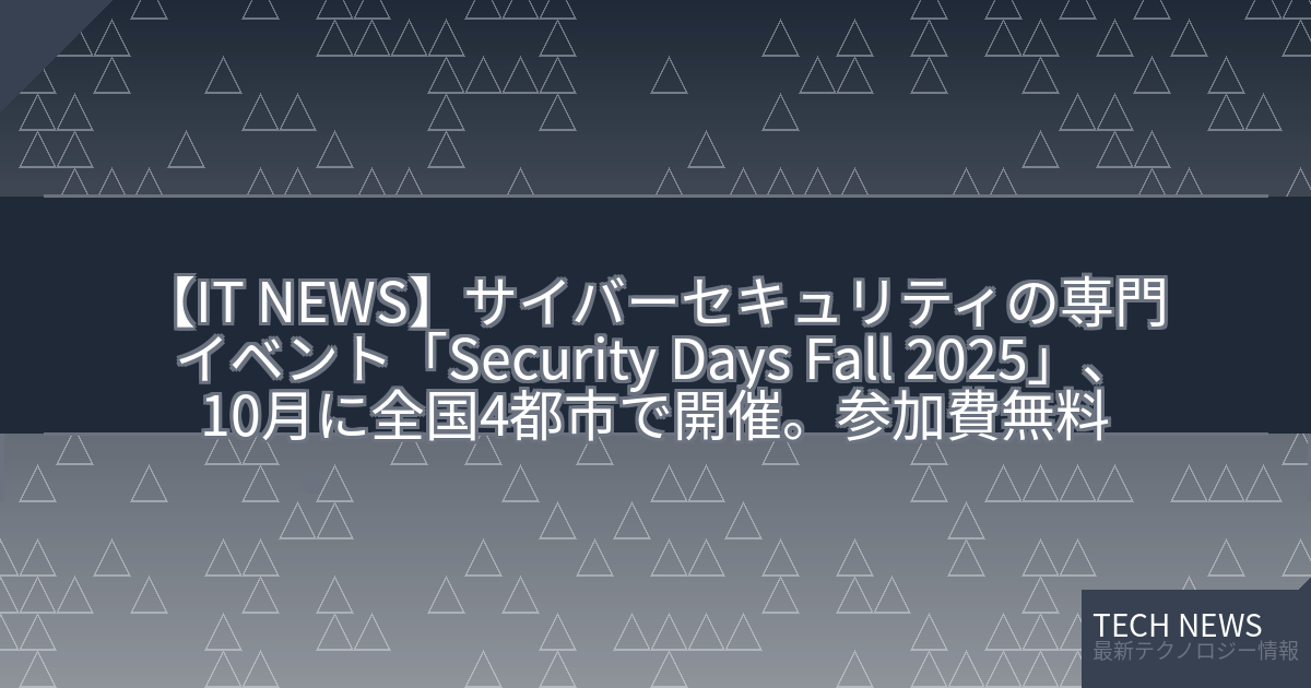 ・元記事タイトル:サイバーセキュリティの専門イベント「Security Days Fall 2025」、10月に全国4都市で開催。参加費無料