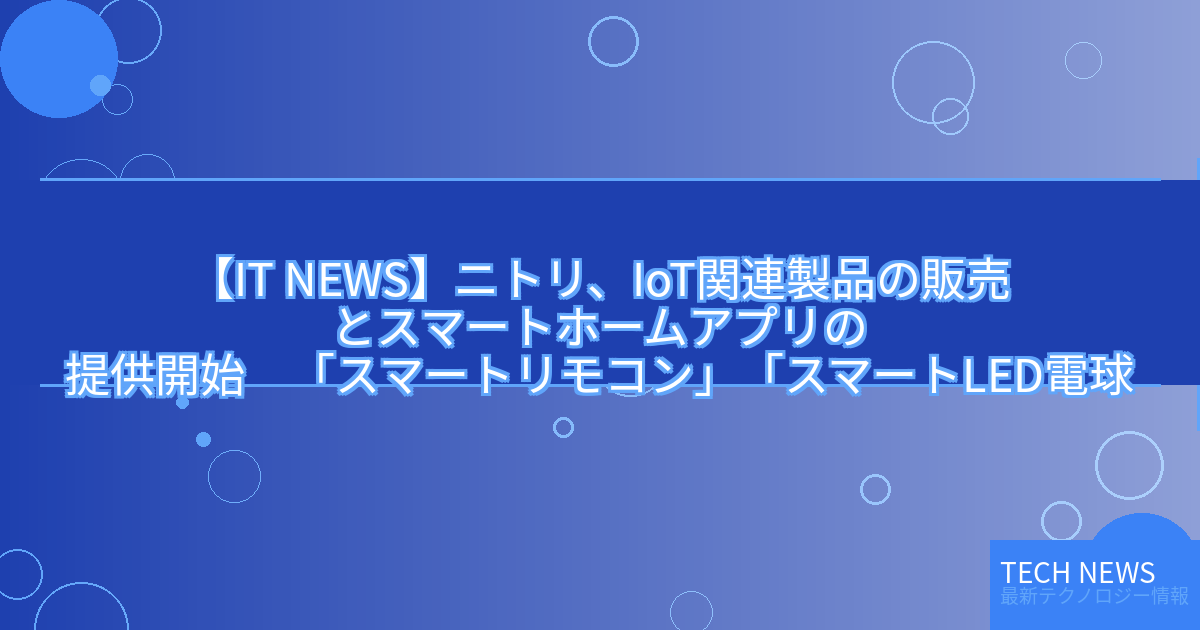 記事タイトル:ニトリ、IoT関連製品の販売とスマートホームアプリの提供開始 「スマートリモコン」「スマートLED電球」「スマートプラグ」「スマート温湿度センサー」がラインアップ