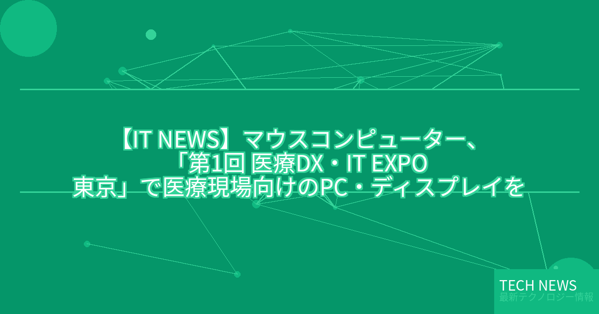 【IT NEWS】マウスコンピューター、「第1回 医療DX・IT EXPO 東京」で医療現場向けのPC・ディスプレイを展示 10月1日~3日に幕張メッセで開催