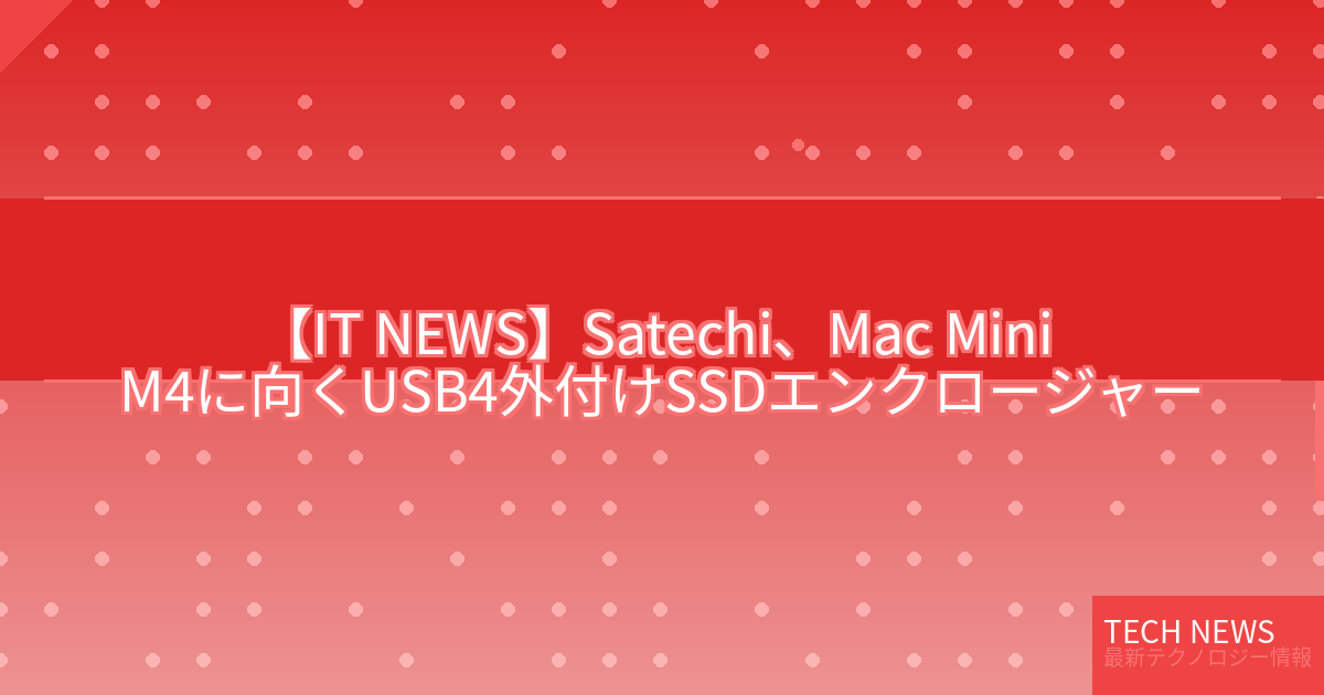 記事タイトル:Satechi、Mac Mini M4に向くUSB4外付けSSDエンクロージャー