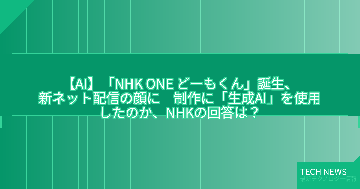 記事タイトル:「NHK ONE どーもくん」誕生、新ネット配信の顔に 制作に「生成AI」を使用したのか、NHKの回答は?