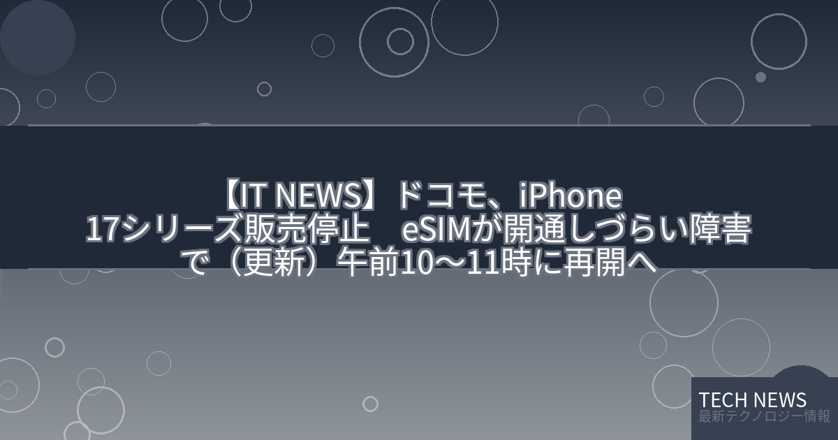 記事タイトル:ドコモ、iPhone 17シリーズ販売停止 eSIMが開通しづらい障害で(更新)午前10〜11時に再開へ