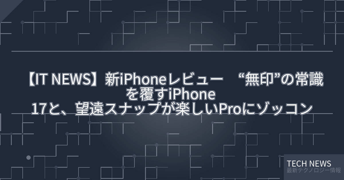 【IT NEWS】新iPhoneレビュー “無印”の常識を覆すiPhone 17と、望遠スナップが楽しいProにゾッコン