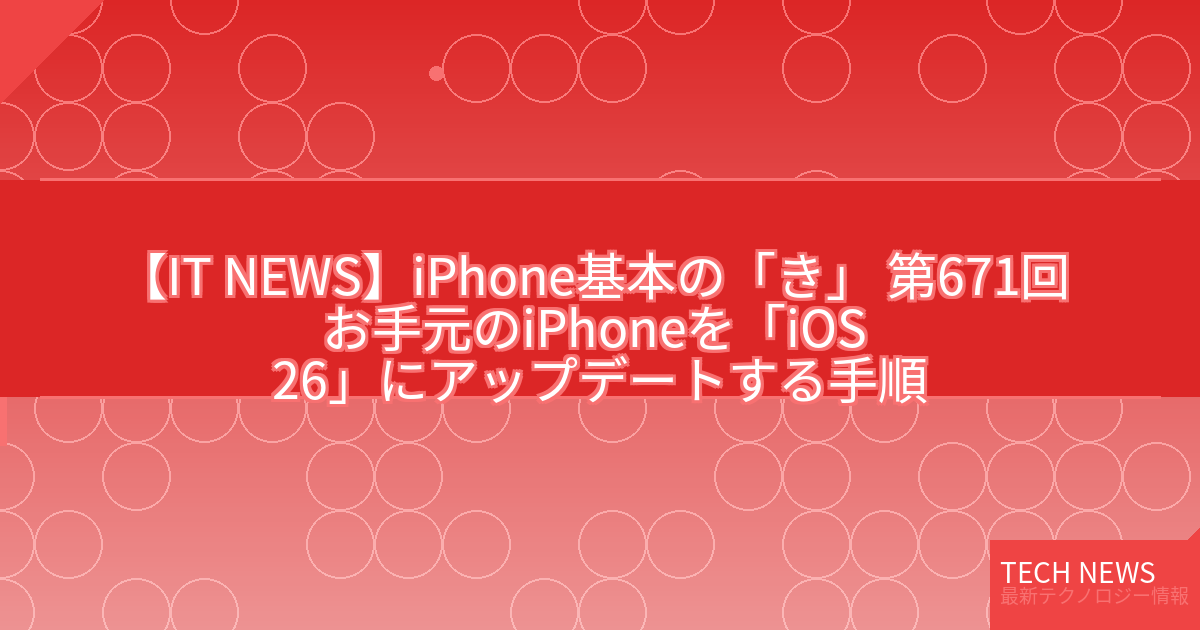 記事タイトル:iPhone基本の「き」 第671回 お手元のiPhoneを「iOS 26」にアップデートする手順