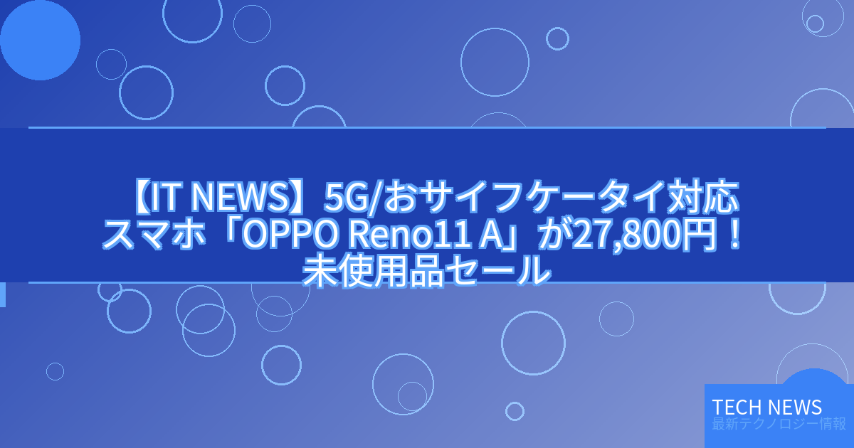 記事タイトル:5G/おサイフケータイ対応スマホ「OPPO Reno11 A」が27,800円!未使用品セール