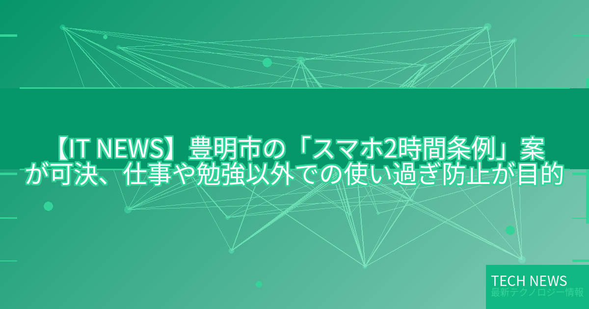 ・元記事タイトル:豊明市の「スマホ2時間条例」案が可決、仕事や勉強以外での使い過ぎ防止が目的