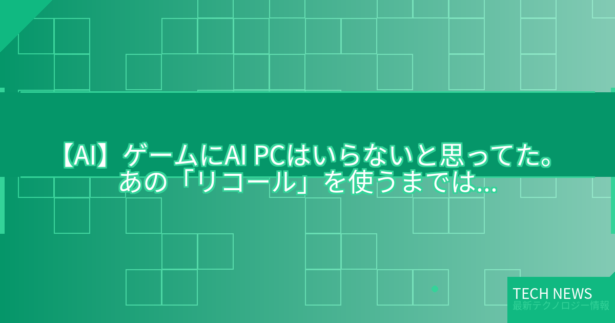 記事タイトル:ゲームにAI PCはいらないと思ってた。あの「リコール」を使うまでは…