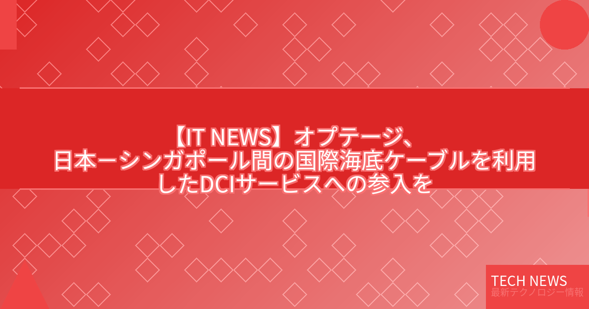 記事タイトル:オプテージ、日本-シンガポール間の国際海底ケーブルを利用したDCIサービスへの参入を発表 日本-シンガポールは2028年度、大阪-首都圏は2026年1月に提供開始予定
