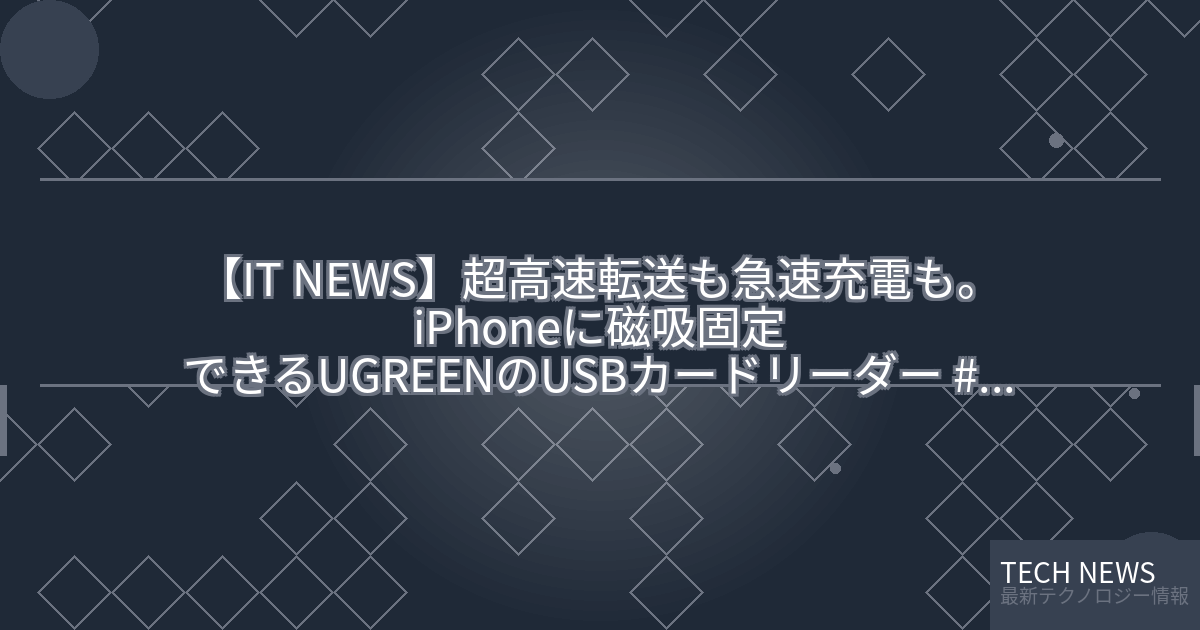 ・元記事タイトル:超高速転送も急速充電も。iPhoneに磁吸固定できるUGREENのUSBカードリーダー #Amazonセール