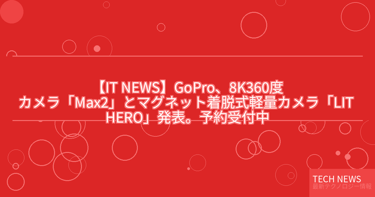 【IT NEWS】GoPro、8K360度カメラ「Max2」とマグネット着脱式軽量カメラ「LIT HERO」発表。予約受付中