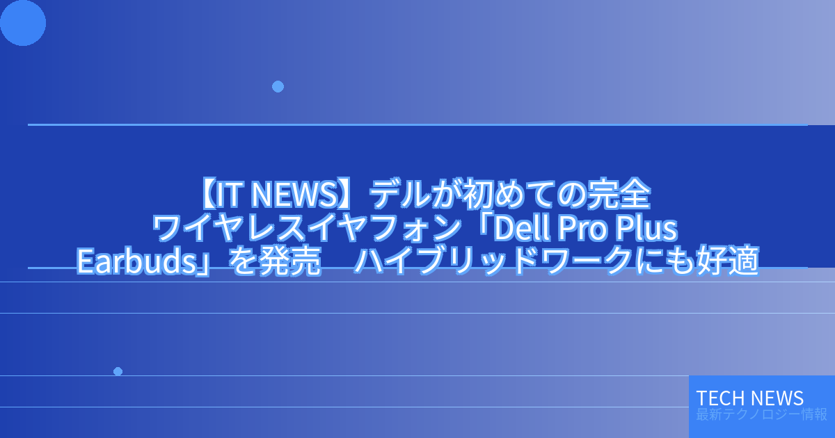 記事タイトル:デルが初めての完全ワイヤレスイヤフォン「Dell Pro Plus Earbuds」を発売 ハイブリッドワークにも好適なノイズフィルタリング機能付き