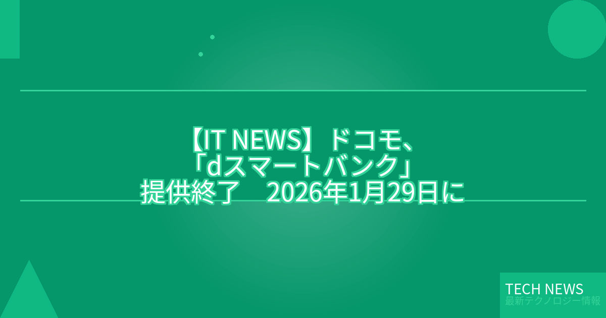 記事タイトル:ドコモ、「dスマートバンク」提供終了 2026年1月29日に