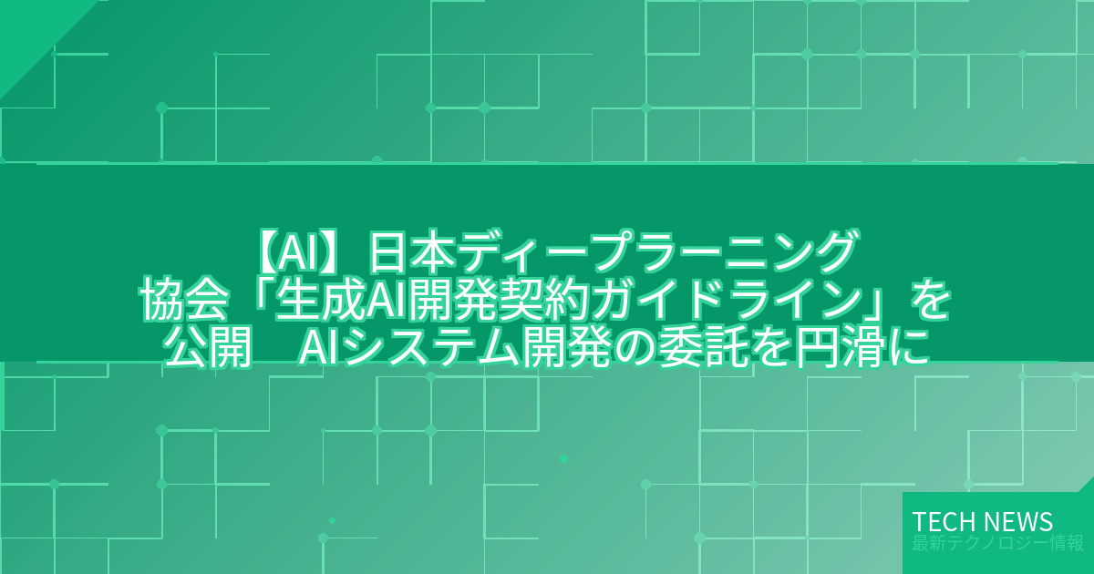 記事タイトル:日本ディープラーニング協会「生成AI開発契約ガイドライン」を公開 AIシステム開発の委託を円滑に