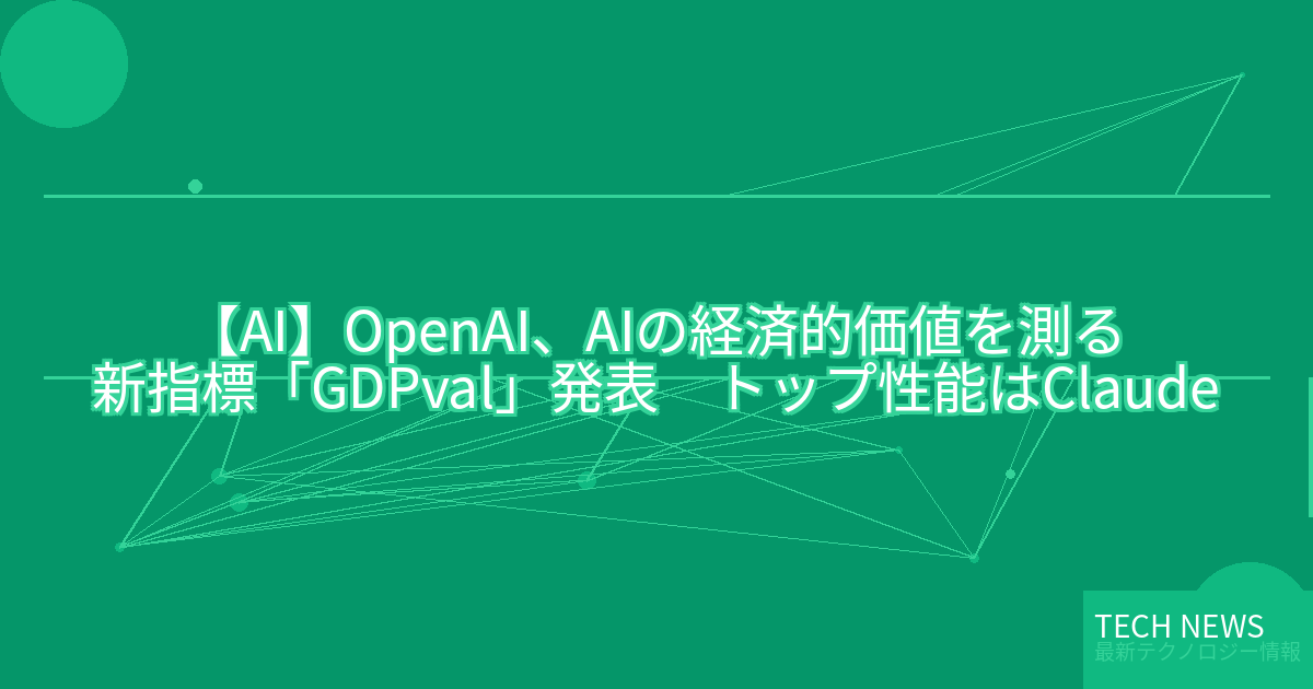 記事タイトル:OpenAI、AIの経済的価値を測る新指標「GDPval」発表 トップ性能はClaude