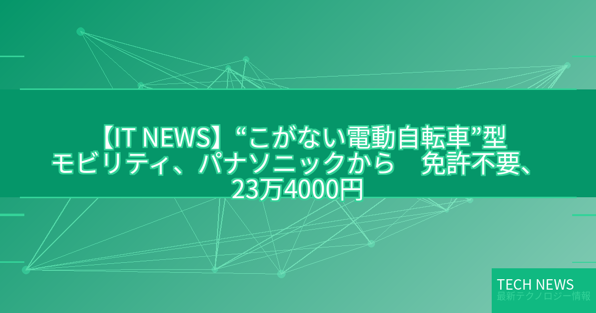 記事タイトル:“こがない電動自転車”型モビリティ、パナソニックから 免許不要、23万4000円