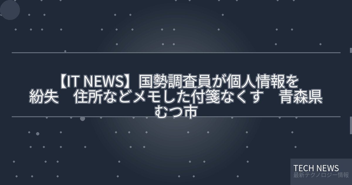 記事タイトル:国勢調査員が個人情報を紛失 住所などメモした付箋なくす 青森県むつ市