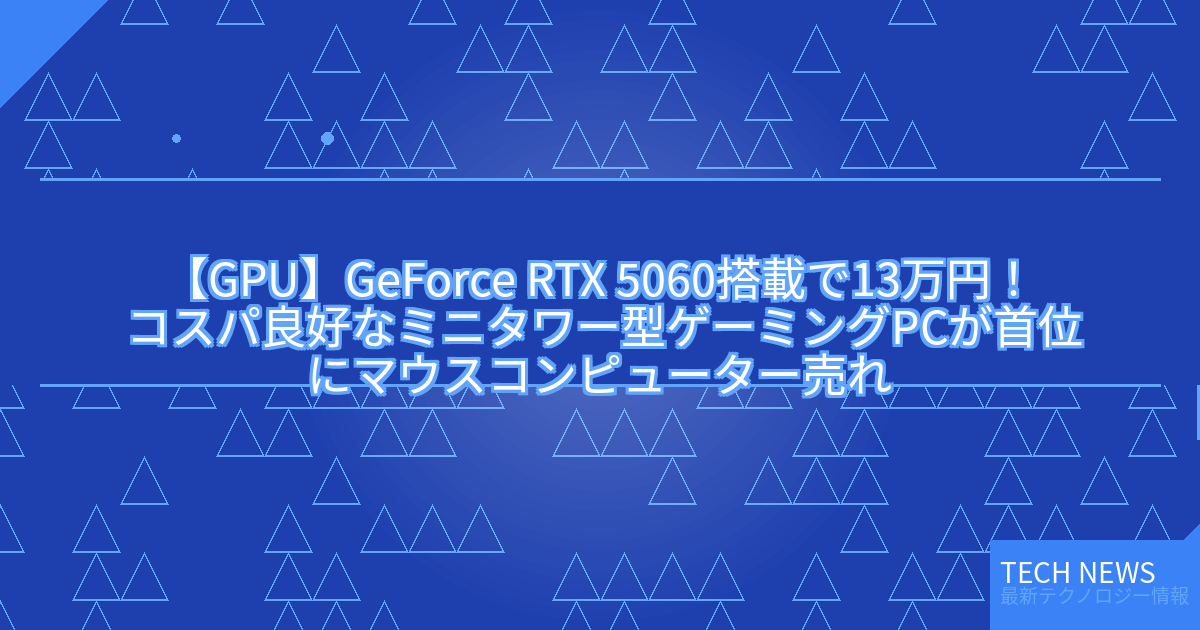 記事タイトル:GeForce RTX 5060搭載で13万円! コスパ良好なミニタワー型ゲーミングPCが首位に【マウスコンピューター売れ筋PCランキング[独立型GPU搭載モデル編 2025/9/26版]】