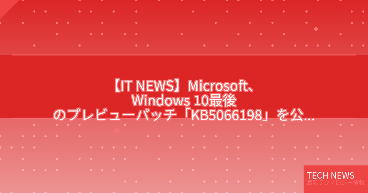 Microsoft の Windows 10 オペレーティングシステムは、2015年7月に発売されて以来、長年にわたりユーザーに広く利用されてきました。しかし、同社は2025年10月のサポート終了に向けて、段階的にWindows 10の更新プログラムの提供を停止していくことを発表しています。今回リリースされた「KB5066198」は、Windows 10の最後のプレビュー更新プログラムとなります。