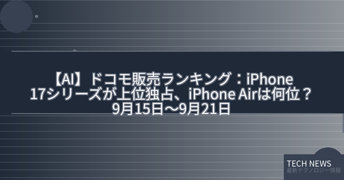記事タイトル:ドコモ販売ランキング:iPhone 17シリーズが上位独占、iPhone Airは何位?【9月15日~9月21日】