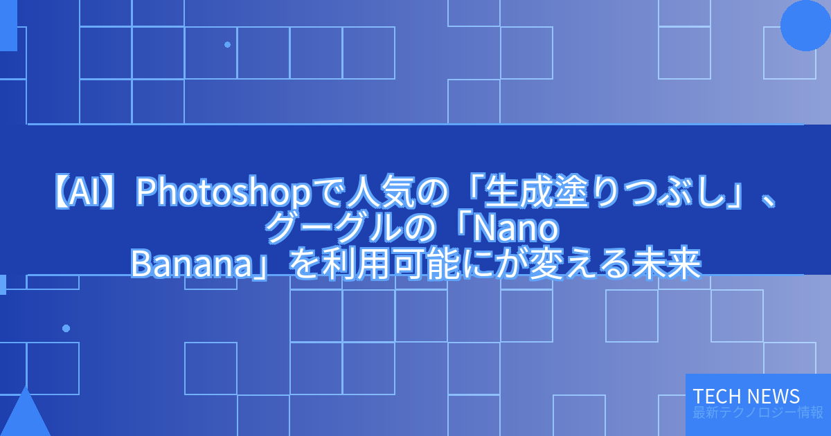 記事タイトル:Photoshopで人気の「生成塗りつぶし」、グーグルの「Nano Banana」を利用可能に