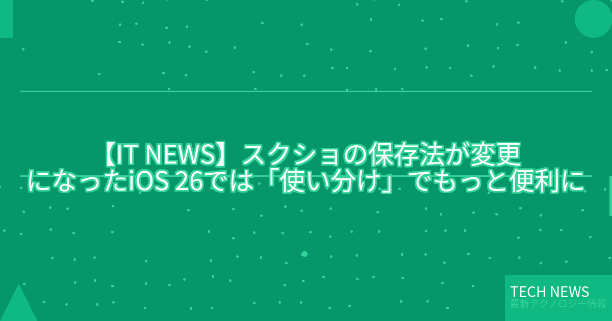 記事タイトル:スクショの保存法が変更になったiOS 26では「使い分け」でもっと便利に