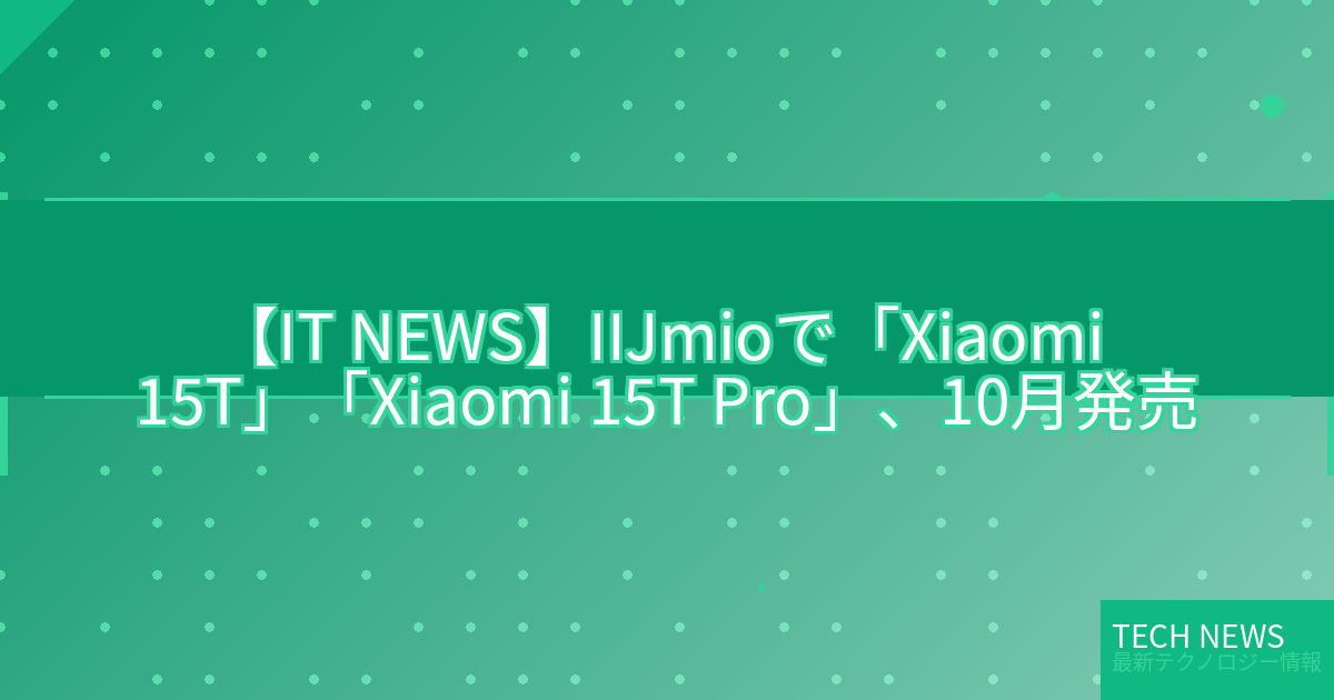【IT NEWS】IIJmioで「Xiaomi 15T」「Xiaomi 15T Pro」、10月発売