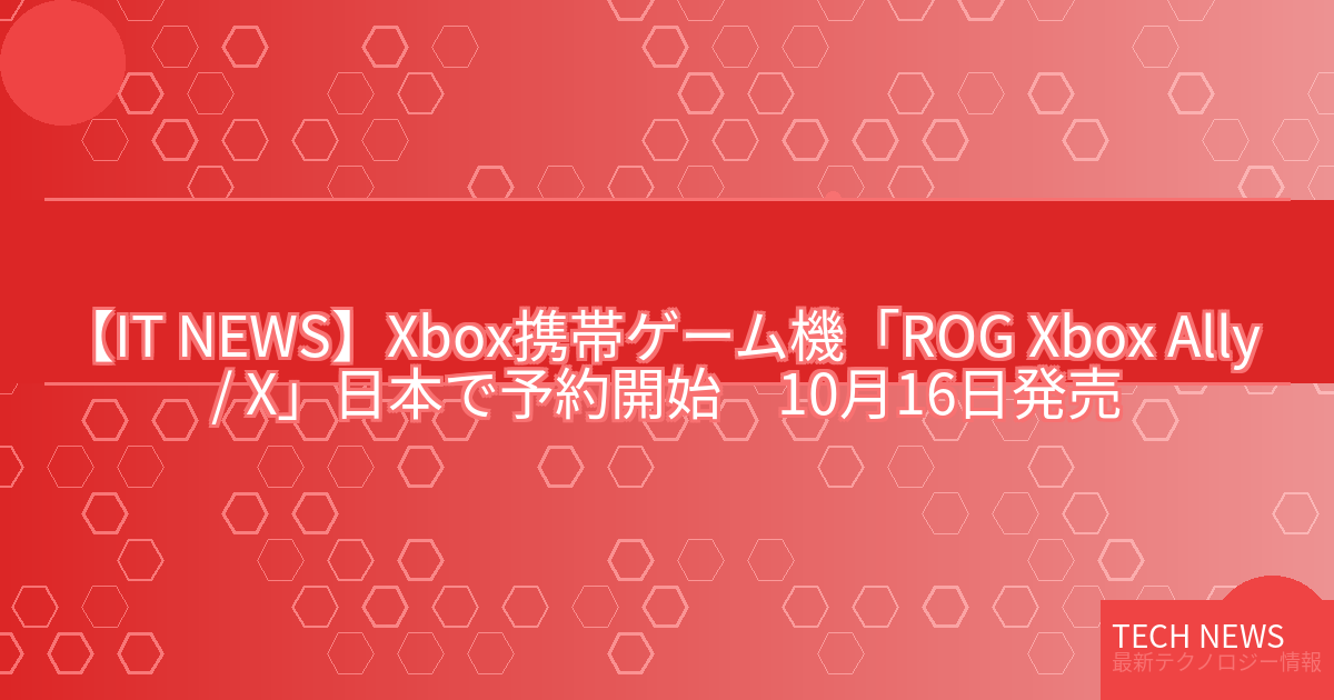 記事タイトル:Xbox携帯ゲーム機「ROG Xbox Ally / X」日本で予約開始 10月16日発売