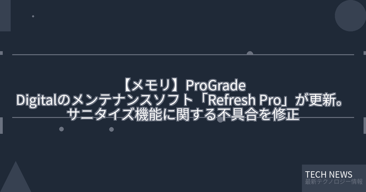 ・元記事タイトル:ProGrade Digitalのメンテナンスソフト「Refresh Pro」が更新。サニタイズ機能に関する不具合を修正