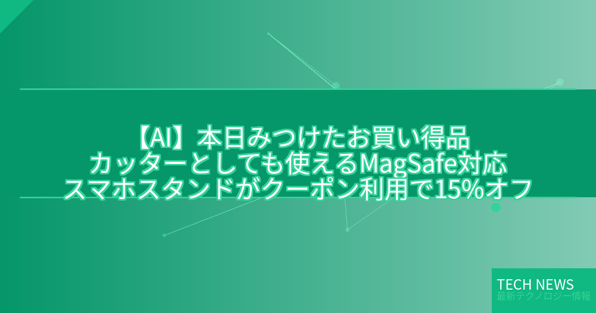 記事タイトル:【本日みつけたお買い得品】カッターとしても使えるMagSafe対応スマホスタンドがクーポン利用で15%オフ