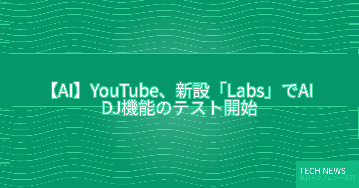 YouTubeが、AIなどの実験的機能を試せる「YouTube Labs」を開設した。最初の試みとして、米国のYouTube Musicで音楽のトリビアなどを語る「AI DJ」機能のテストを開始した。Labsの機能はPremiumユーザー限定となる見込み。