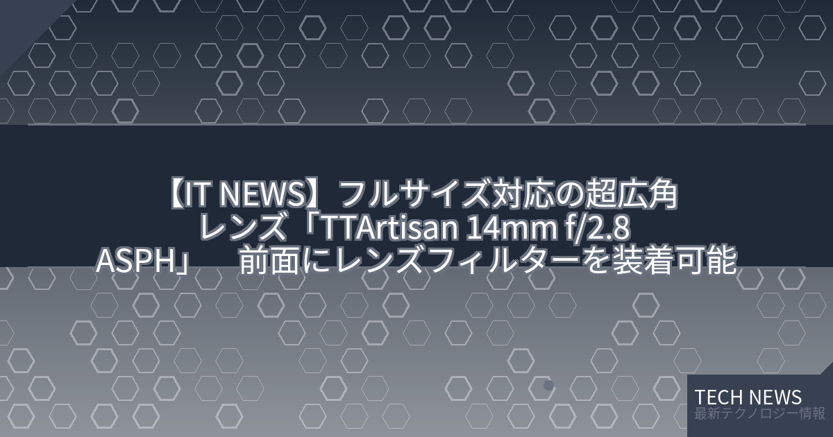 ・元記事タイトル:フルサイズ対応の超広角レンズ「TTArtisan 14mm f/2.8 ASPH」 前面にレンズフィルターを装着可能