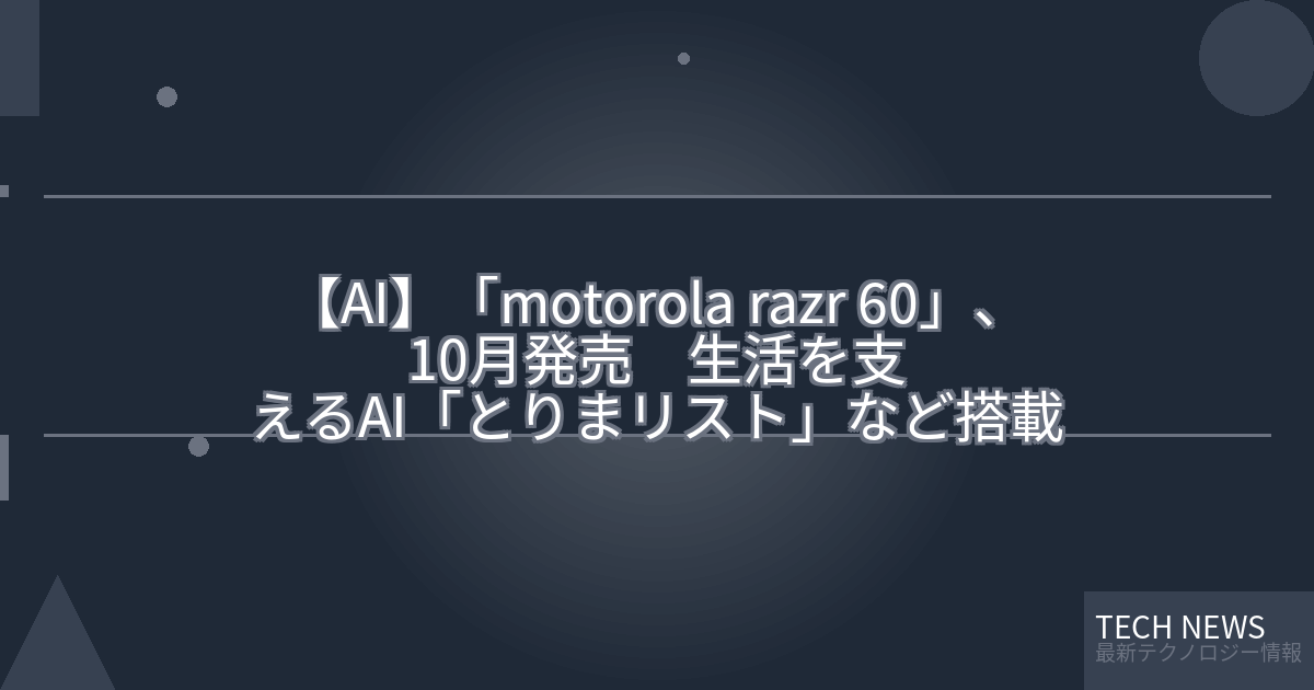 記事タイトル:「motorola razr 60」、10月発売 生活を支えるAI「とりまリスト」など搭載