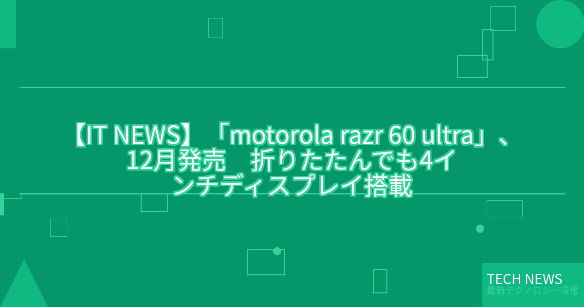 【IT NEWS】「motorola razr 60 ultra」、12月発売 折りたたんでも4インチディスプレイ搭載