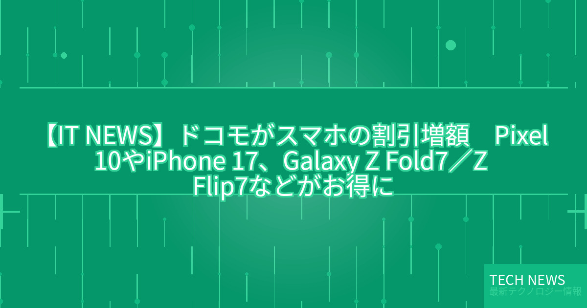 記事タイトル:ドコモがスマホの割引増額 Pixel 10やiPhone 17、Galaxy Z Fold7/Z Flip7などがお得に
