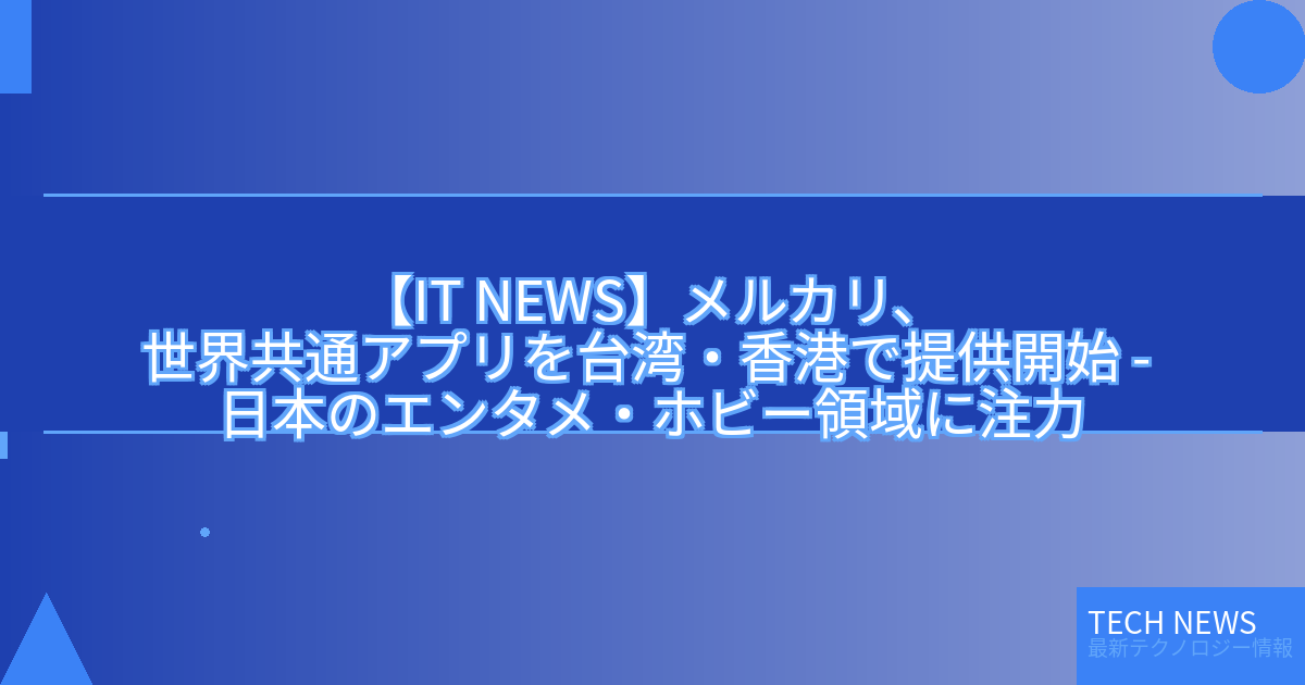 記事タイトル:メルカリ、世界共通アプリを台湾・香港で提供開始 – 日本のエンタメ・ホビー領域に注力