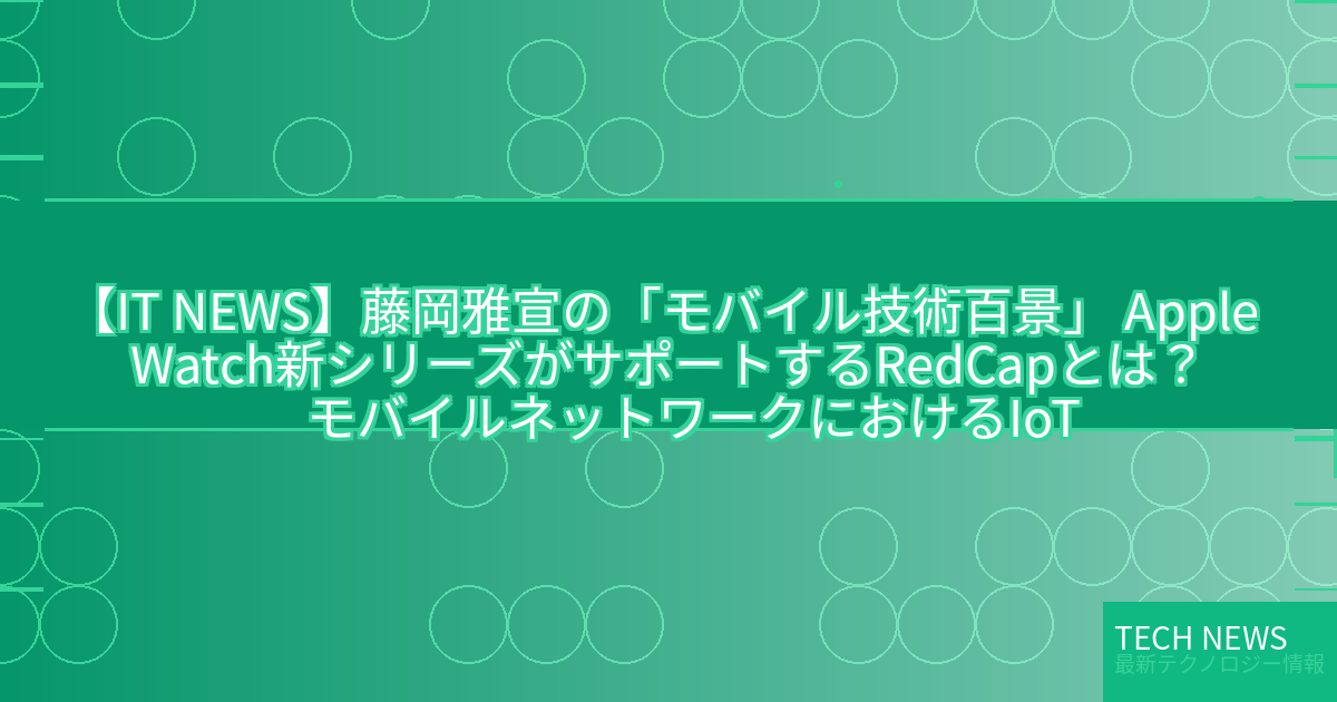 ・元記事タイトル:[藤岡雅宣の「モバイル技術百景」] Apple Watch新シリーズがサポートするRedCapとは? モバイルネットワークにおけるIoT