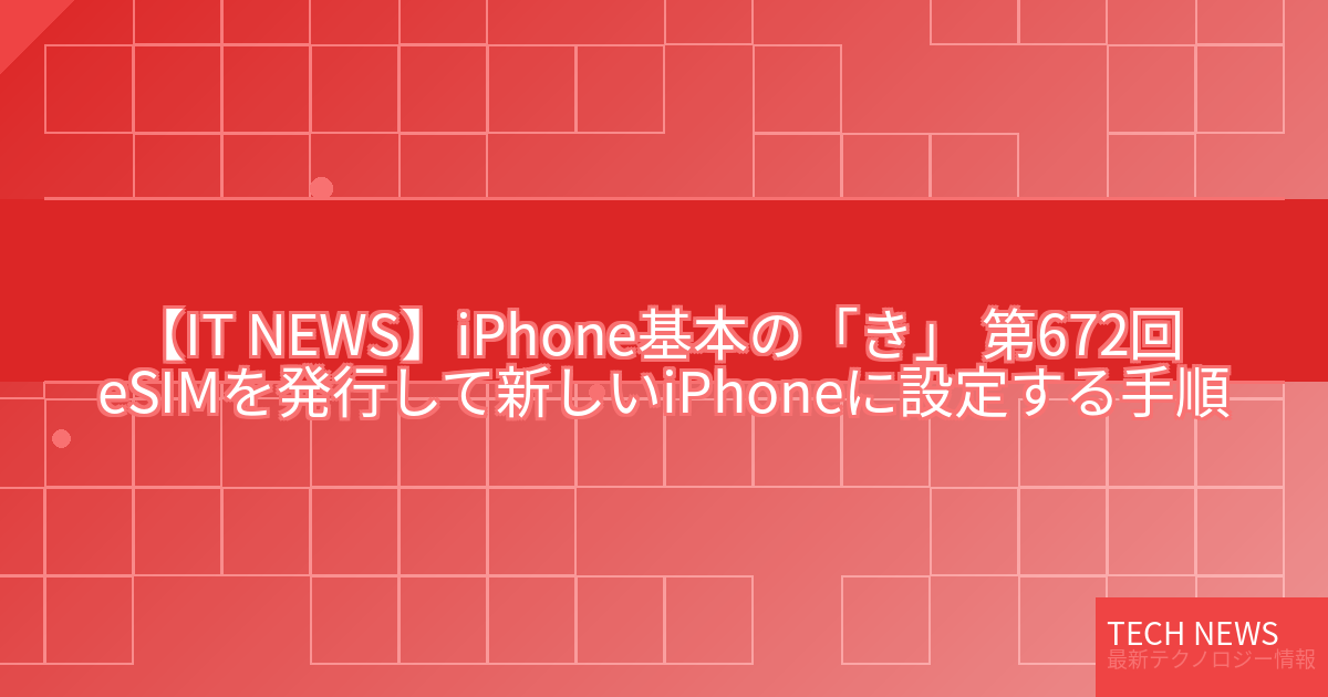 【IT NEWS】iPhone基本の「き」 第672回 eSIMを発行して新しいiPhoneに設定する手順