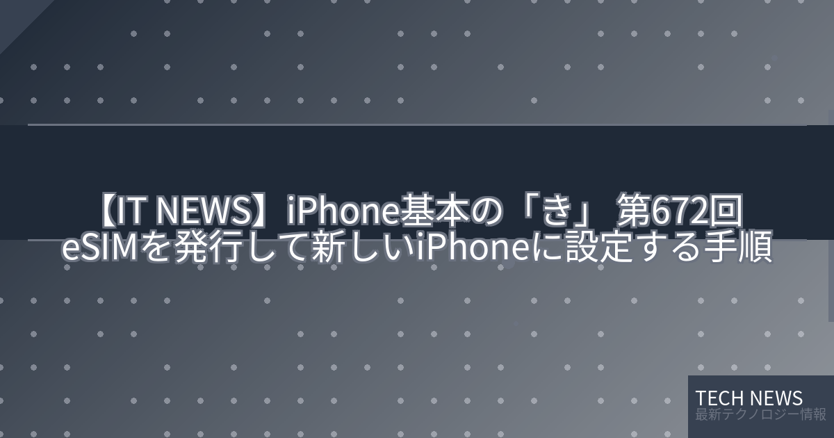記事タイトル:iPhone基本の「き」 第672回 eSIMを発行して新しいiPhoneに設定する手順