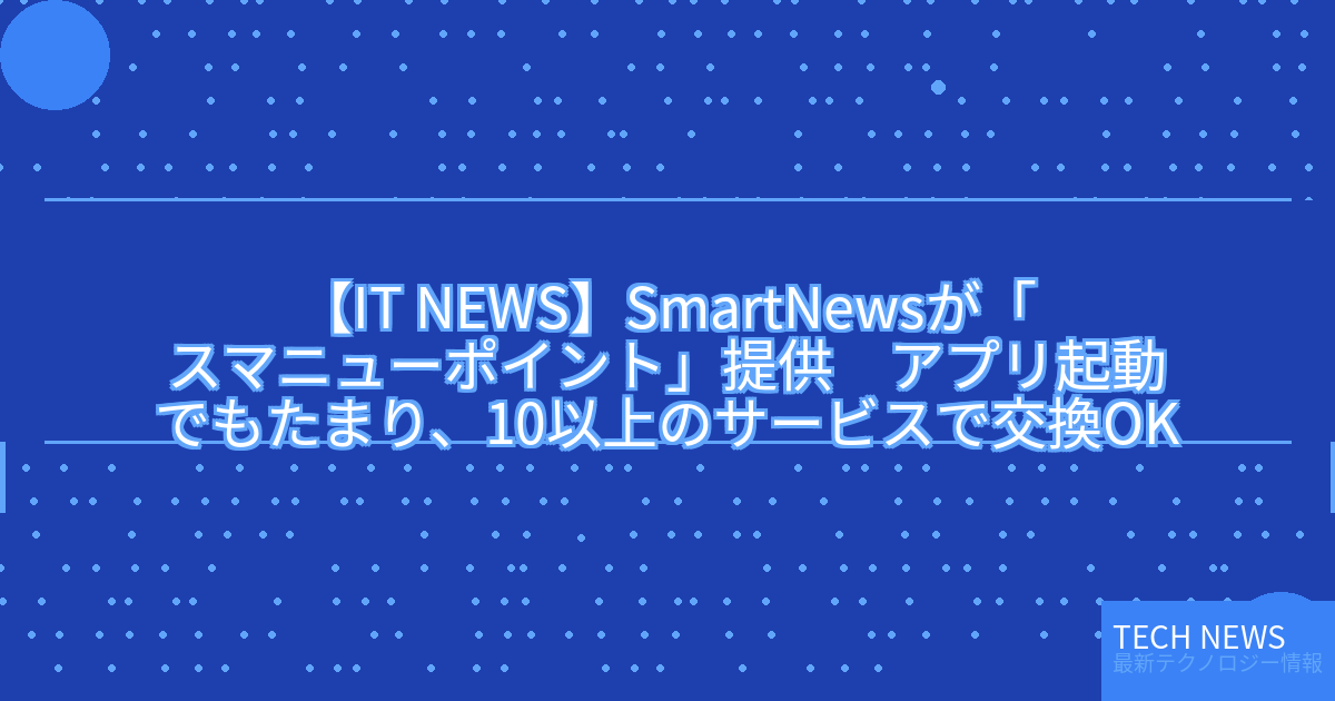 記事タイトル:SmartNewsが「スマニューポイント」提供 アプリ起動でもたまり、10以上のサービスで交換OK