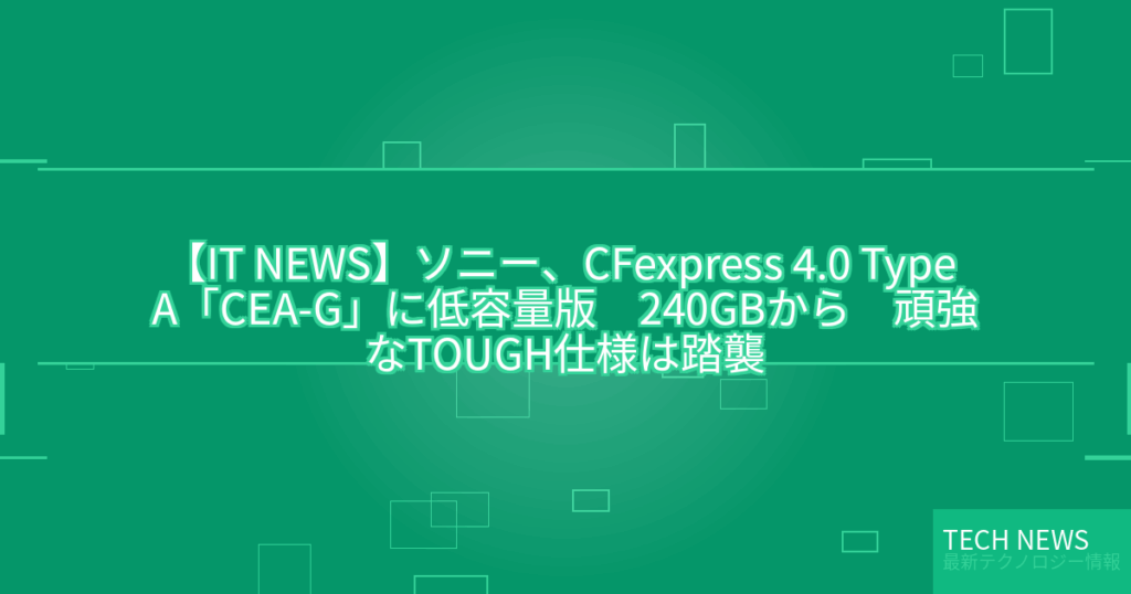 【IT NEWS】ソニー、CFexpress 4.0 Type A「CEA-G」に低容量版 240GBから 頑強なTOUGH仕様は踏襲