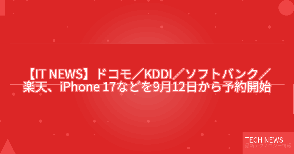 【IT NEWS】ドコモ/KDDI/ソフトバンク/楽天、iPhone 17などを9月12日から予約開始