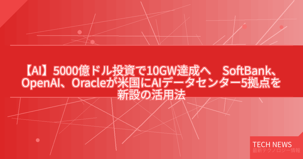 【AI】5000億ドル投資で10GW達成へ SoftBank、OpenAI、Oracleが米国にAIデータセンター5拠点を新設の活用法