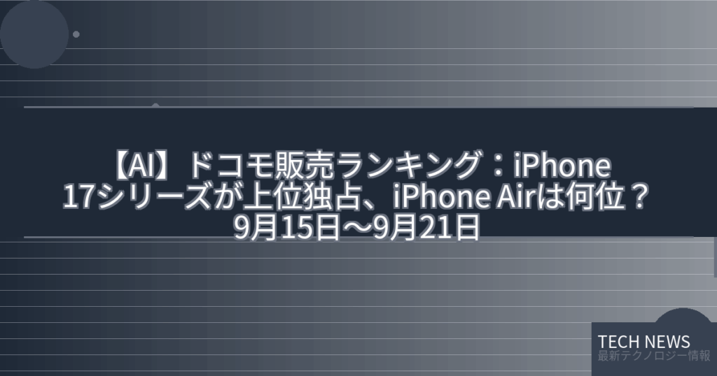 【AI】ドコモ販売ランキング:iPhone 17シリーズが上位独占、iPhone Airは何位?9月15日~9月21日