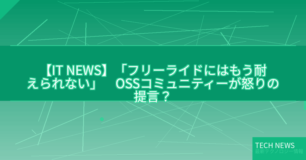 【IT NEWS】「フリーライドにはもう耐えられない」 OSSコミュニティーが怒りの提言?