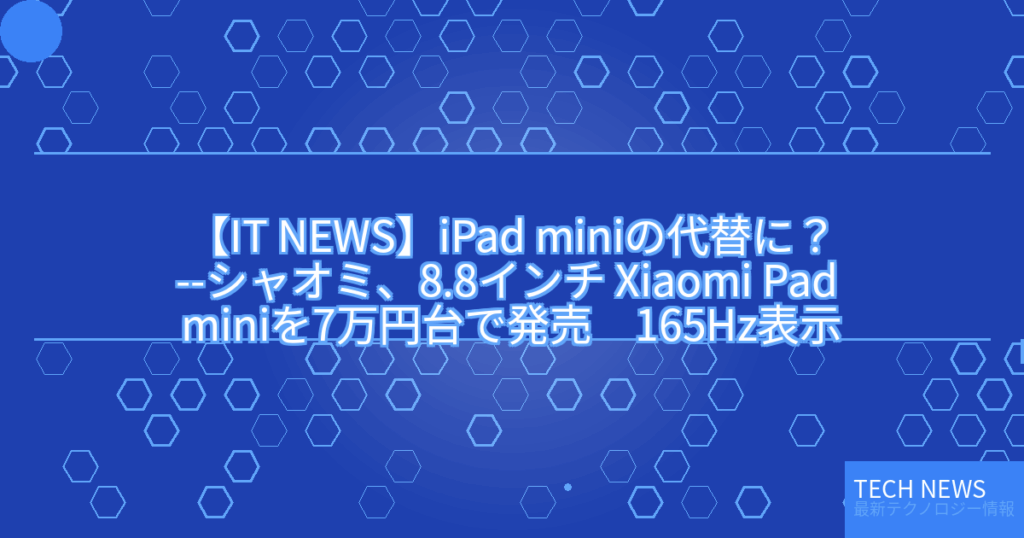 【IT NEWS】iPad miniの代替に?–シャオミ、8.8インチ Xiaomi Pad miniを7万円台で発売 165Hz表示