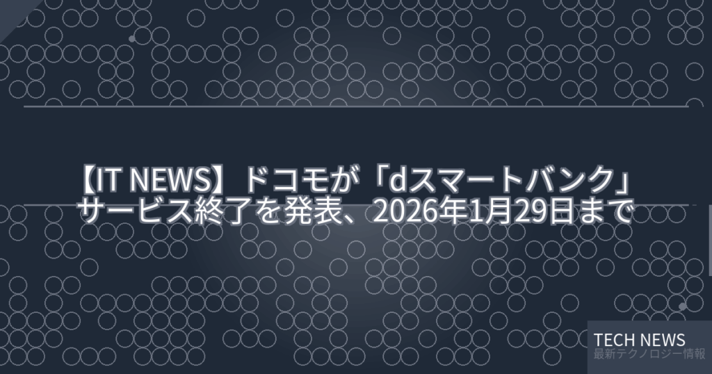 【IT NEWS】ドコモが「dスマートバンク」サービス終了を発表、2026年1月29日まで