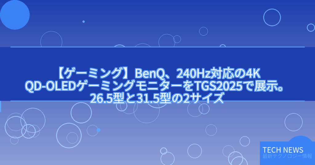 【ゲーミング】BenQ、240Hz対応の4K QD-OLEDゲーミングモニターをTGS2025で展示。26.5型と31.5型の2サイズ